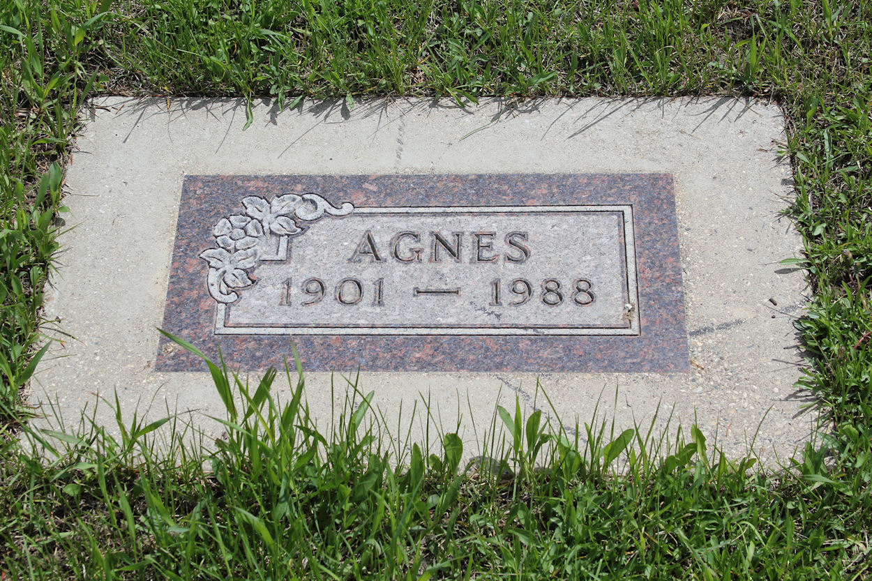 Headstone inscription: The stone's concrete base is 20" by 30", the headstone is 10½" by 20". |
