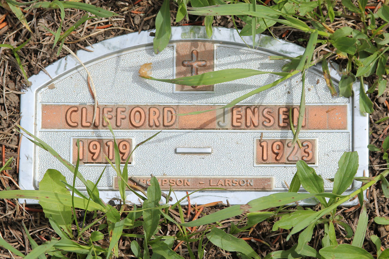 Metal marker:CLIFFORD JENSEN1919-1923THOMPSON-LARSON