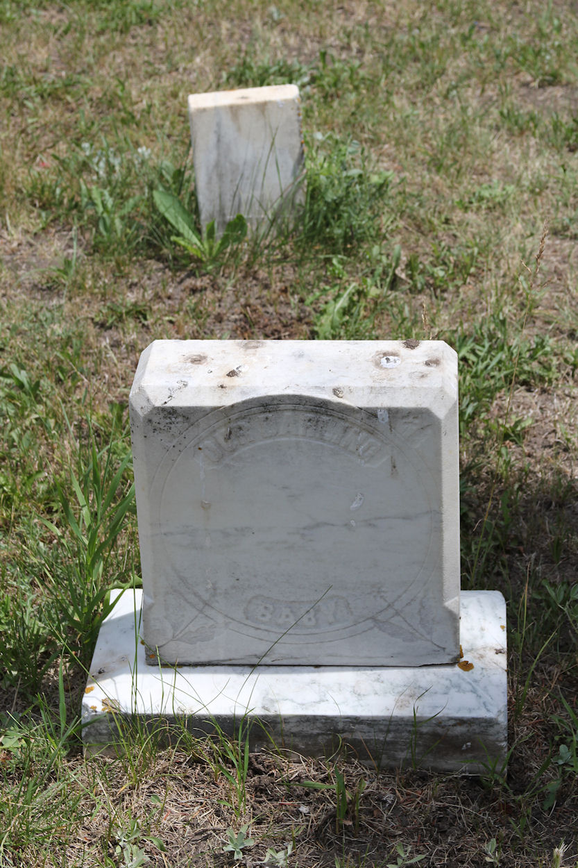Headstone inscription: The stone plinth is 8½" by 16¼" and the monument is 4" deep by 12" wide. The entire installation is about 16" tall. The uninscribed footstone is 2" deep by 6" wide and is 8" high. This is probably a child of Marion E. Baker. |