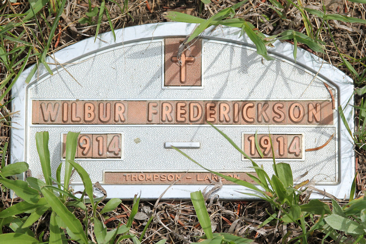 Metal marker:WILBUR FREDERICKSON1914-1914THOMPSON-LARSON
