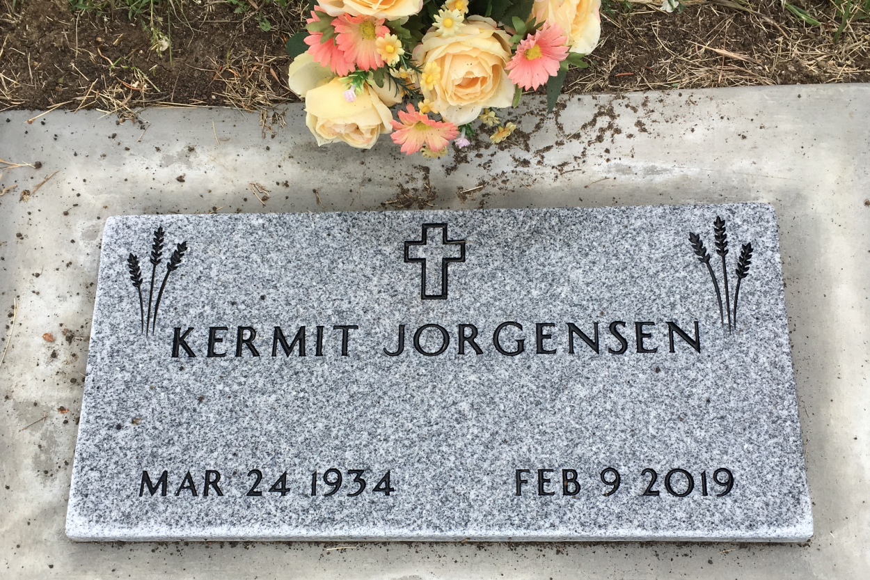 Headstone inscription:KERMIT JORGENSENMAR 24 1934 FEB 9 2019